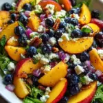 As summer unfolds, a radiant burst of color and flavor rests within the simple elegance of a Peach and Blueberry Salad. Imagine sinking your fork into a bowl overflowing with vibrant hues—ripe peaches glistening like gems in the sunlight, plump blueberries popping with juiciness, and leafy greens providing a fragrant backdrop. The first bite evokes an explosion of sunshine on your tongue, as the sweet nectar of peaches dances harmoniously with the tartness of juicy blueberries. This isn’t just a salad; it’s a celebration of the season—a refreshing, joyful symphony of flavors and textures that beckons you back for more.